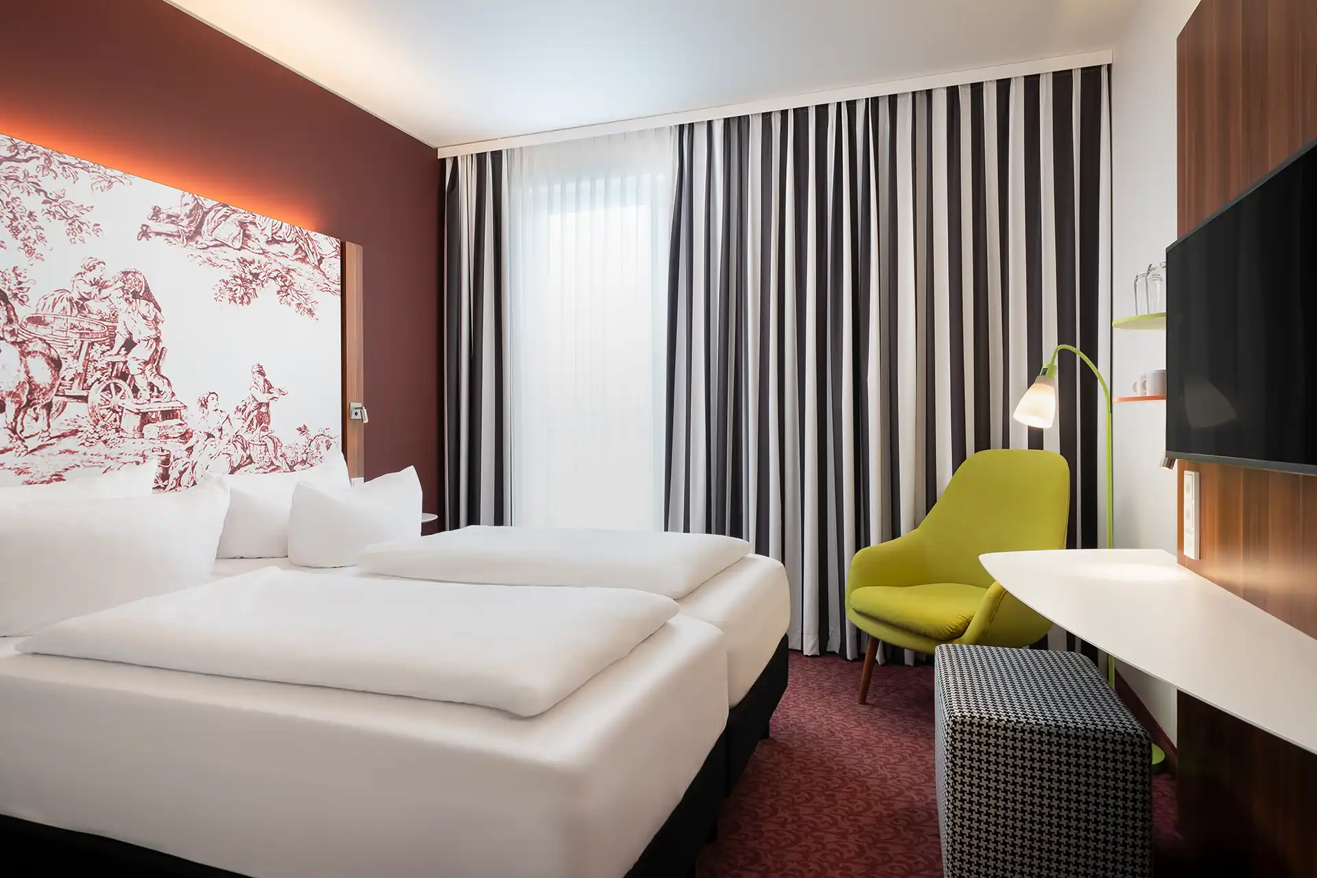 Das Karl bietet 109 Zimmer zum Übernachten in Ingelheim – klar im Design, warm in der Atmosphäre. Hochwertige Materialien und durchdachte Details schaffen Räume, die ankommen lassen. Mit Größen zwischen 22 und 32 Quadratmetern bieten die drei Kategorien Business- und Freizeitreisenden gleichermaßen Raum für Ruhe und Komfort. Zur Ausstattung gehören Flachbildfernseher, Safe, Telefon sowie Tee- und Kaffeezubehör – alles, was einen Aufenthalt angenehm macht.